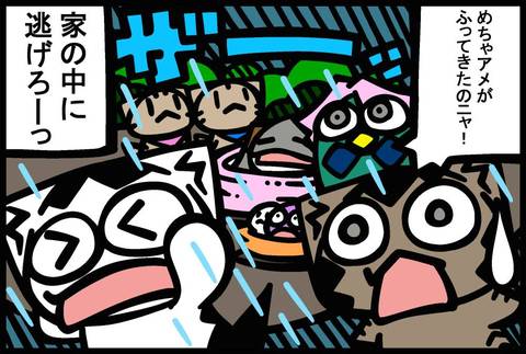 >あけた窓からすかさずカッパ着てお外にでるたらふくちゃん達カワユ♪