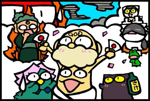 >花咲か神様お父ちゃん♪ お空で桜のお花見最高ね!