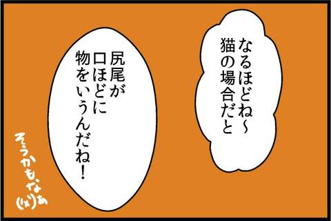家の猫も私が話かけている間は尻尾の先を少し揺らしてお話を聞いていますよ❗と、言う顔をしてくれます。それがたまらなく可愛くて(^^)