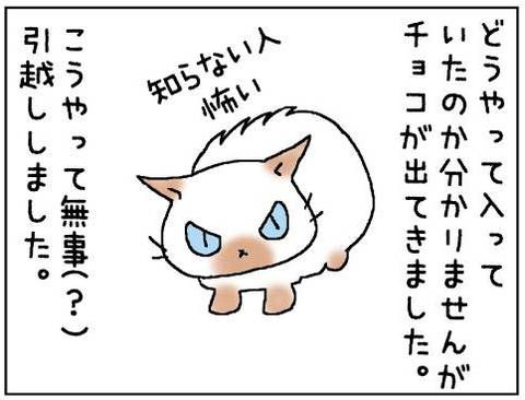 チョコちゃん、見つかってよかったね♪チョコちゃんが行方不明になっちゃったら、何のために引っ越すか理由が無くなるところだったにゃ!