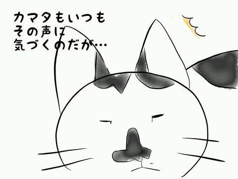 4コマ、5コマの顔、いかにも寝起きって感じで笑っちゃいました。リアルかまちゃん、ふっくらしてますね。きっとシアワセ。毎日鳴いてる子は、飼い主よほど忙しいのかな。