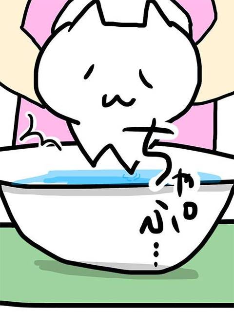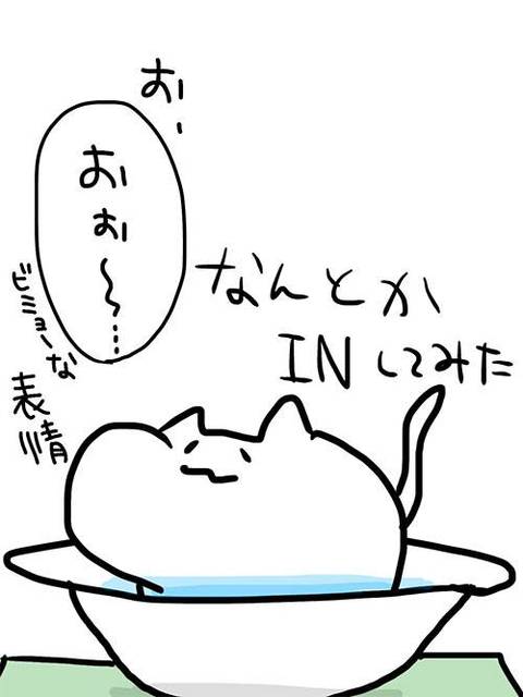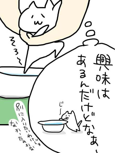 水に入っただけスゴいっ!世間にはお風呂に入る猫様もいるんですよねぇ。見てみたいなー。