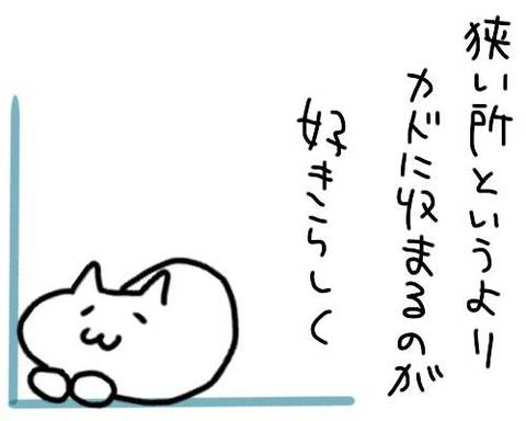 確かに部屋の角に自分の体をフィットさせるのが上手いですね♪たまに、ビックリする体勢で(苦しくないか?)寝ているのが可愛いですねf(^_^;