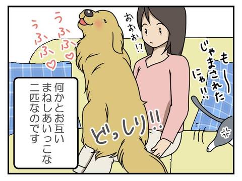 アーティとまめちゃんのまねっこのやり合いが無償の癒しを与えてくれるのですね~(^^)v