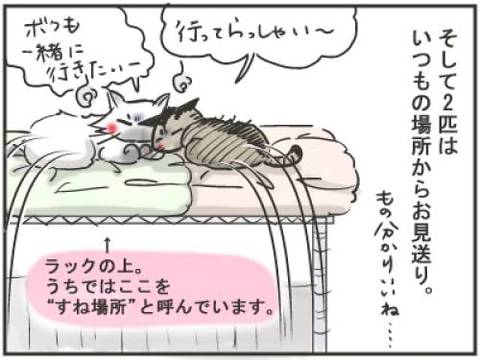 定位置から見送りはしてくれますが、最近は出掛ける準備を始めると