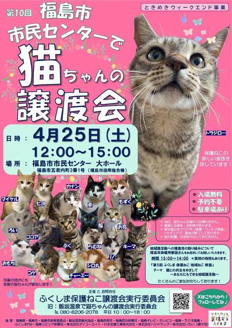 「SAVE THE CAT!」では、猫の譲渡会や里親募集情報などの掲載を希望する団体や個人を募集しています。