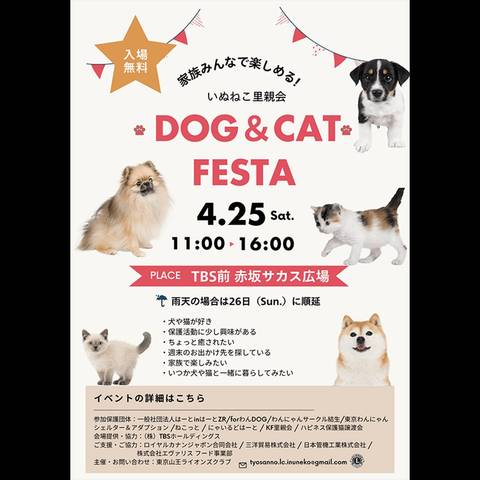 東京山王ライオンズクラブ主催の保護犬、保護猫と里親さんとのマッチングイベントを行います。