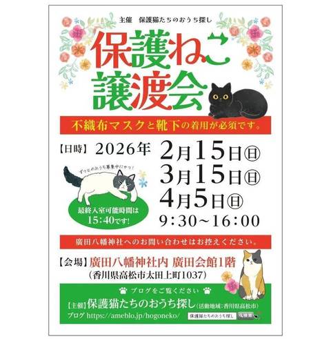 ※2、猫が含まれていれば、猫以外の動物の譲渡会と同時開催でも問題ございません。