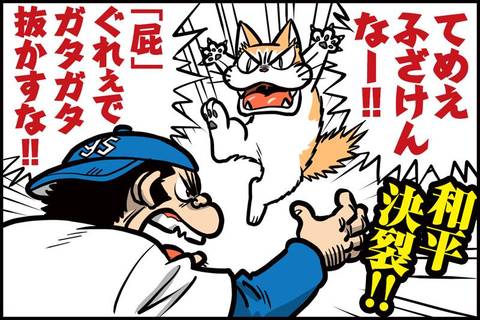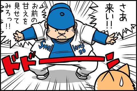 何だかスゴい事になってますね~~~ パパさんは甘える筈がまさかの乱闘とは(笑) 拳をぶつけ合って仲を深めていく?間柄みたいですね~~~( ´∀`) 二人共ボコボコですな(爆)