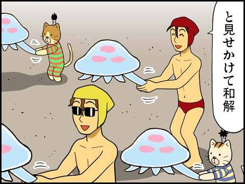 九月のクラゲにのったら、みな落とされるわけ? クラゲさんは征服者かニャ?