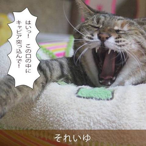 キャビアはお塩が強すぎるから、にゃんこ用のおやつを貰おうね(笑)
