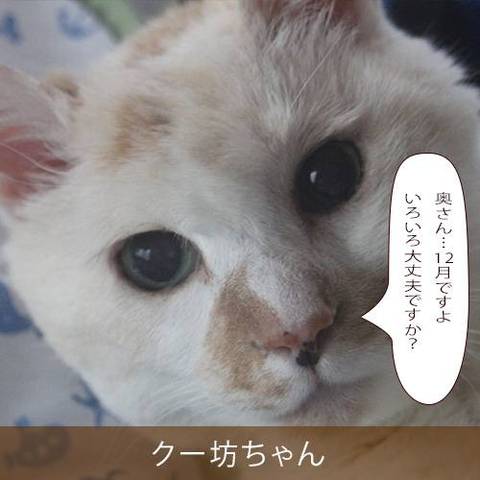 もう12月早いねぇ…クー坊ちゃんのドアップの可愛さで元気が出たよ!