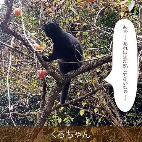 くろちゃん、ワイルドだね~かっこいい!柿はも少し熟そうかね。