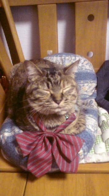 私の中学の時のリボンつけてるの(^^)