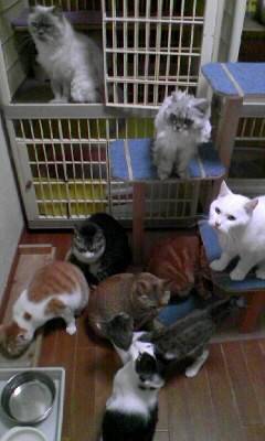 うわ~いっぱいいる~。しかも全員そろっていないなんて何匹いるんですか?いいなあ囲まれてみたいです。