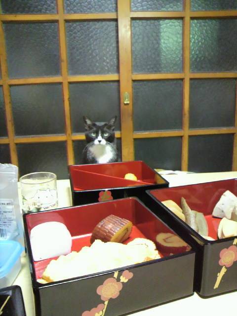 去年の年末に居間のお膳をテーブルに変えてのお正月、テーブルの上にはおせちやお刺身がズラリ。そしたらにゃん様お刺身が分かったのかいつもと違うと思ったのか椅子に乗って一緒にテーブルを囲んでました。でも、次の日からは乗らず椅子の下に入れた猫ベッドが気に入った様です^^;