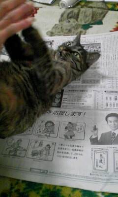 新聞紙の間に入り込んで爪でぐじゃぐじゃにして読めなくする時もあります