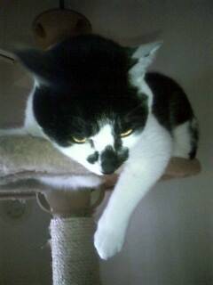 おわ〜(@_@)ちょいワルおちばクンだ〜(笑)何か男前って感じします♪頭 半分黒ネコちっくなんですねp(^^)q