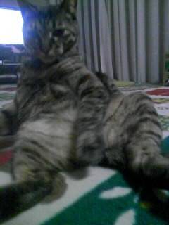 アッハッハ、なんて大胆なポーズ。ちゃんと隠してるし。でもこういう格好で猫ってリラックスしてますよね。