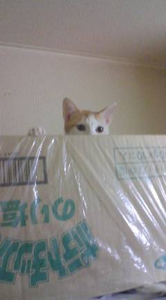 か、可愛え〜o(><)o ポテチの箱ってのが笑えます(笑)家はインスタントラーメンの箱ならありますよ(笑)