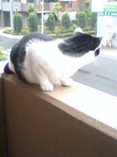 洗濯物干すときや、ベランダにでると、いつも手すりにちょこんと座り、外の空気を満喫しながら見ています(笑)2階だけどあぶないよ~おちば…