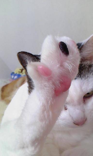 あたたかいコメントありがとうございます何故かはたぼうはこのポーズが得意で…特に眠くなる前にピンクピンクになります 肉球占いの本 今度探してみま~す これからもよろしくお願いします
