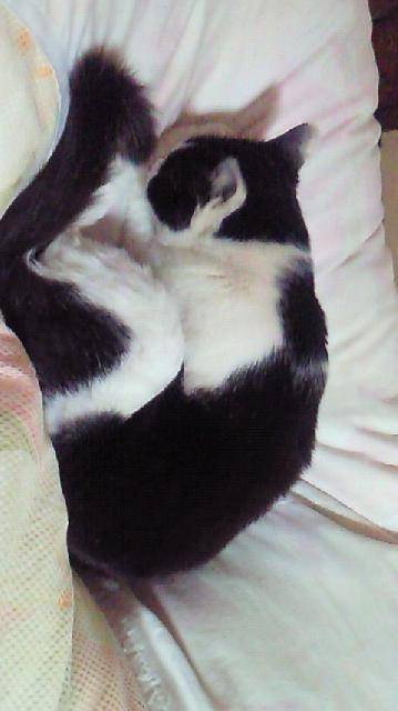 寝る前にクルクル廻って、良いポジションを捜してるんですかね?一度、クルクルしてるから、寝るのかな?って思ってたら…オシッコをされた事が有ります(涙)