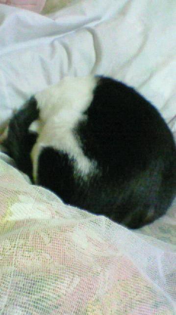 今回は猫まんじゅうのように真ん丸くなって寝ているみなです
