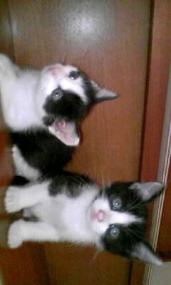 この家に来た時の(左)まるぞうとバロンです。このとき里親がみつかってたんだけどキャンセルなっちゃいましま。