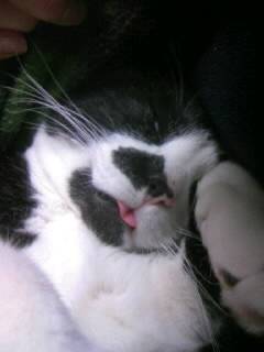 チロッと出た舌が最高にかわいいですね。いい気持ちで寝てるんだろな。