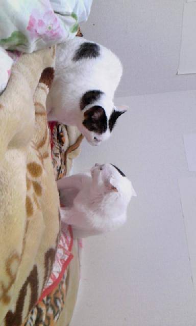 この後 お互いににゃんこパンチを出して結局はてんすけが「わしゃかなんよ」と逃げ出しました(笑)今はまた仲良く寝とります(笑)