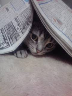 あらあら…上手に隠れたね♪新聞紙ごと踏まれないように気をつけてよ~◎