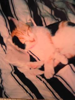 八年前、我が家に来たばかりの、ちびっこ。手作りの枕で熟睡中(笑)今は、お母ちゃんが枕です(笑)