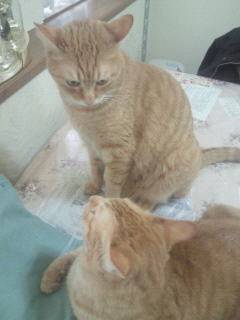 あらら~ めっちゃ ガン飛ばしてますねぇ~どっちが、お姉ちゃんかな?
