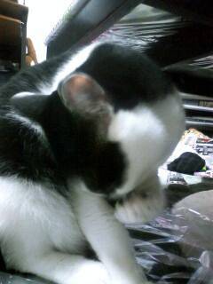毛繕いで肉球メンテナンス中ですな!たまに、かじってひっぱったりしませんか(・・?)あれなんでするんだろうか‥。次はお顔見せてね!