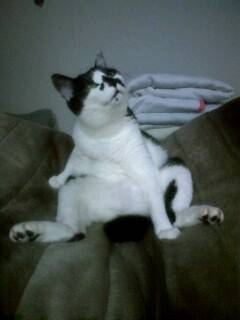 これはすごい格好ですねー(笑)そしてまたなんともいえないようなかわいい顔(笑)猫って表情があっていいですよね(^ω^)